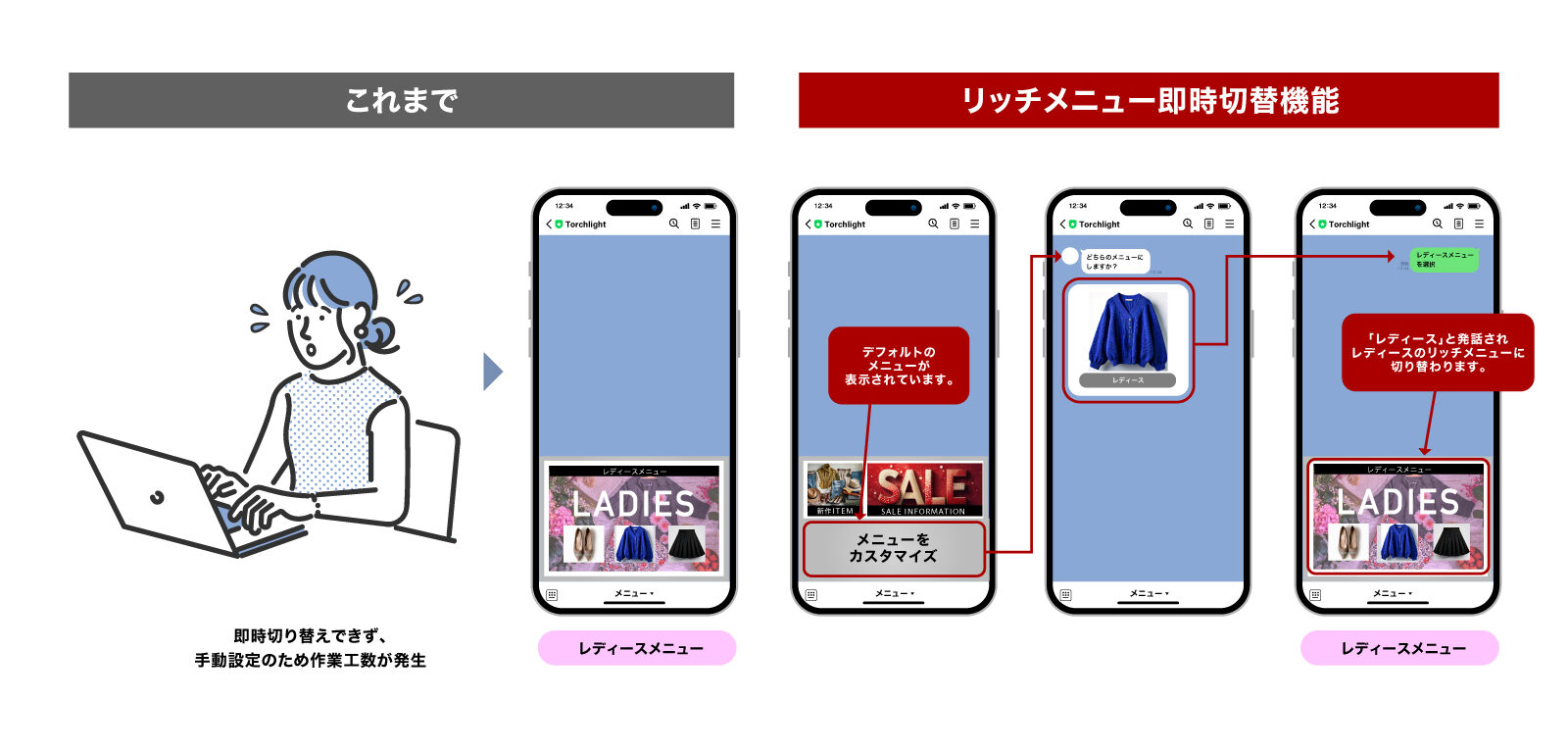 レスポンシブリッチメニューとは、リッチメニューの即時切り替え機能です。この機能の革新性は、応答性の高さにあります。キーワード応答でリッチメニューを自動的に切り替える機能を実装することで、ユーザーがアクションを起こすとすぐにメニューが切り替わるインタラクティブな体験を提供しました。