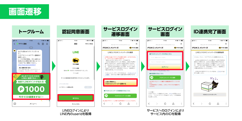 ID連携時にユーザー認証が必要ですが、これはユーザーとLINEの間で実施されるため、企業側で別途開発する必要がない点がメリットです。