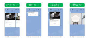 テンプレートメッセージは、単なる吹き出し形式のメッセージに留まらず、ボタンやカルーセルなどの要素を組み合わせて、多様な情報をユーザーに提示できる機能です。カルーセル形式では複数の情報を横にスライド表示でき、ユーザーに選択肢を提示することで、具体的なアクションを促すことが可能です。