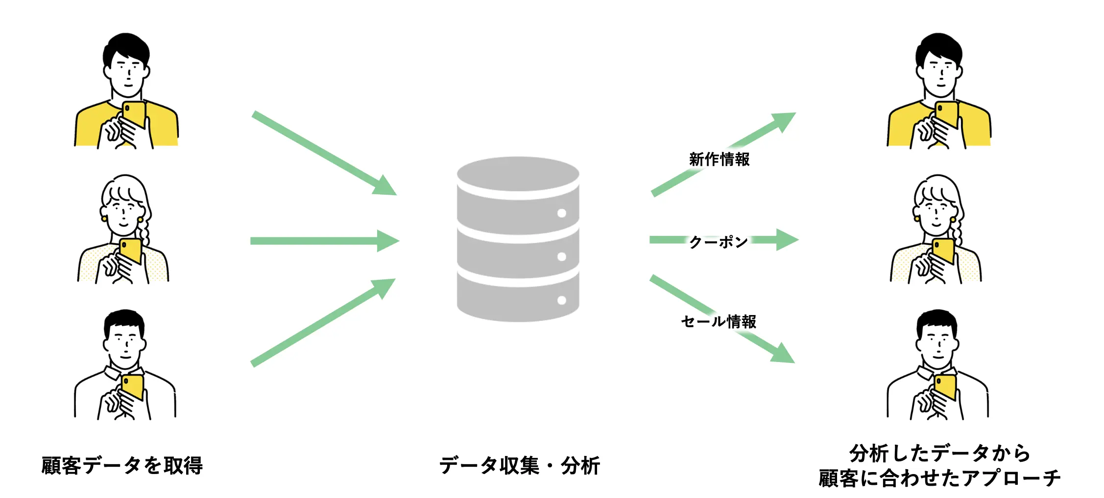LINE公式アカウントを活用し、友だち登録してくれたユーザーを顧客と捉えて管理することが可能です。これはCRM(顧客関係管理)の考え方に基づいた施策と言えます。メッセージの開封率やURLのクリック状況などを把握したり、顧客情報に応じて配信内容やリッチメニューを出し分けるといった運用が考えられます。