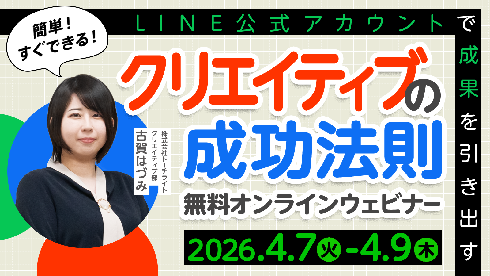 本セミナーでは、クリエイティブに詳しくない方でもすぐに参考にできる「LINE公式アカウントの基本的なクリエイティブ制作ポイント」を解説します。